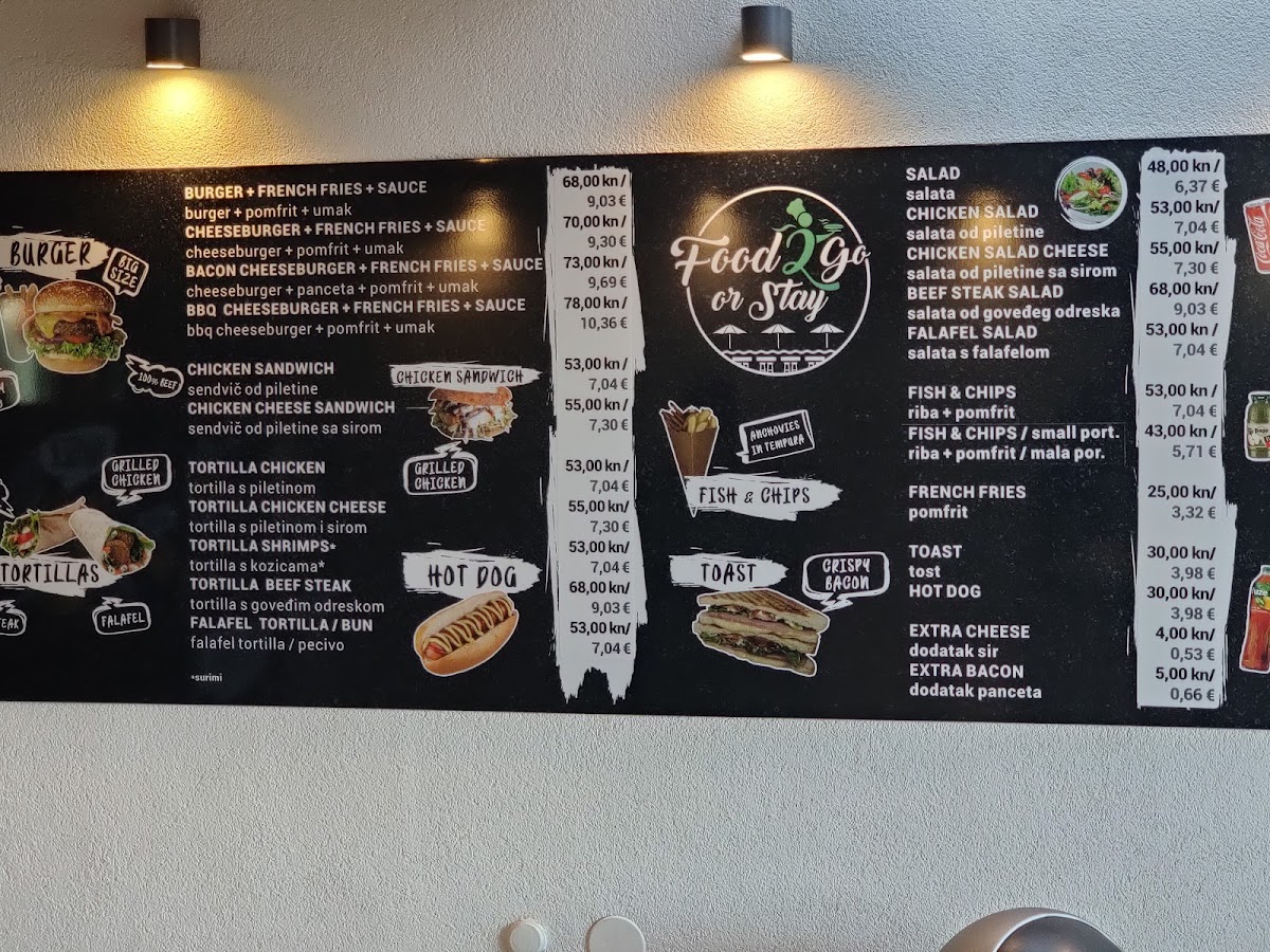 Welcome to Food2go, a charming fast food haven located on Rudina 6, Bol, Croatia. This spot is perfect for a quick yet satisfying meal, ideal for those looking to grab a bite before their ferry ride. The menu boasts a superb selection of burgers, from classic cheeseburgers to indulgent BBQ variations, all served with crispy french fries. Salad lovers aren’t forgotten, with options like juicy chicken salad and falafel salad, perfect for a light yet flavorful option.
